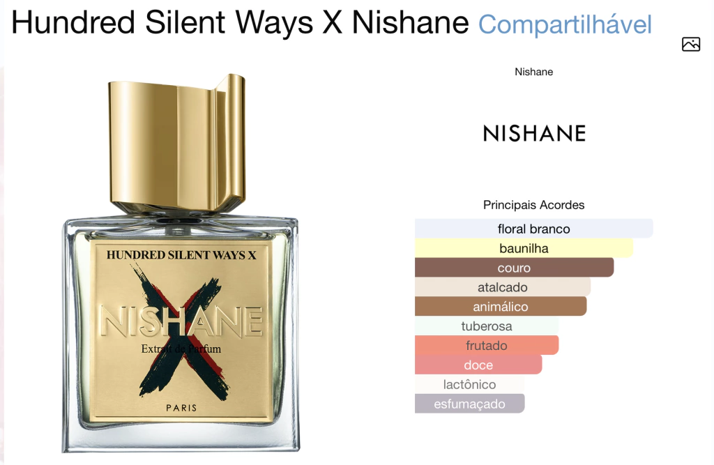 Hundred Silent Ways X é sensual, elegante e com presença. Abre com frutas e flores brancas, evolui para um coração floral mais encorpado e se fixa na pele com um fundo quente e levemente ousado. Perfeito pra quem ama perfumes com personalidade forte, toque adocicado e excelente fixação.